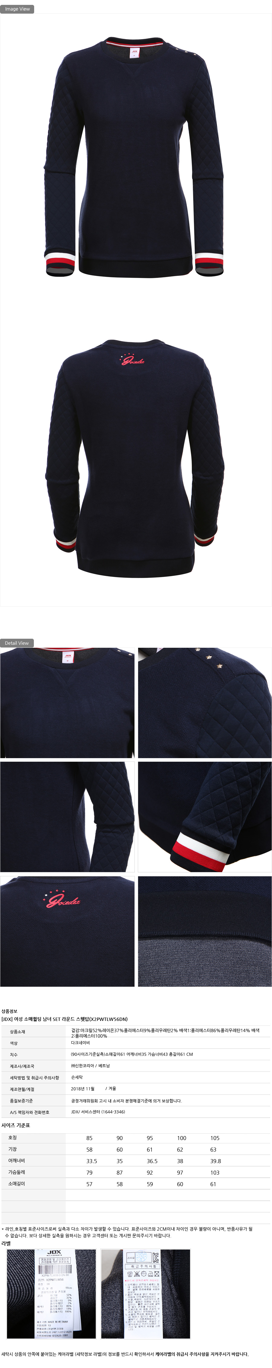 소매퀼팅 디테일을 포인트로 적용한 남녀 SET 라운드 스웻탑입니다.■ 상품이미지