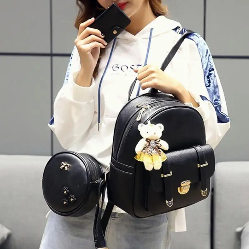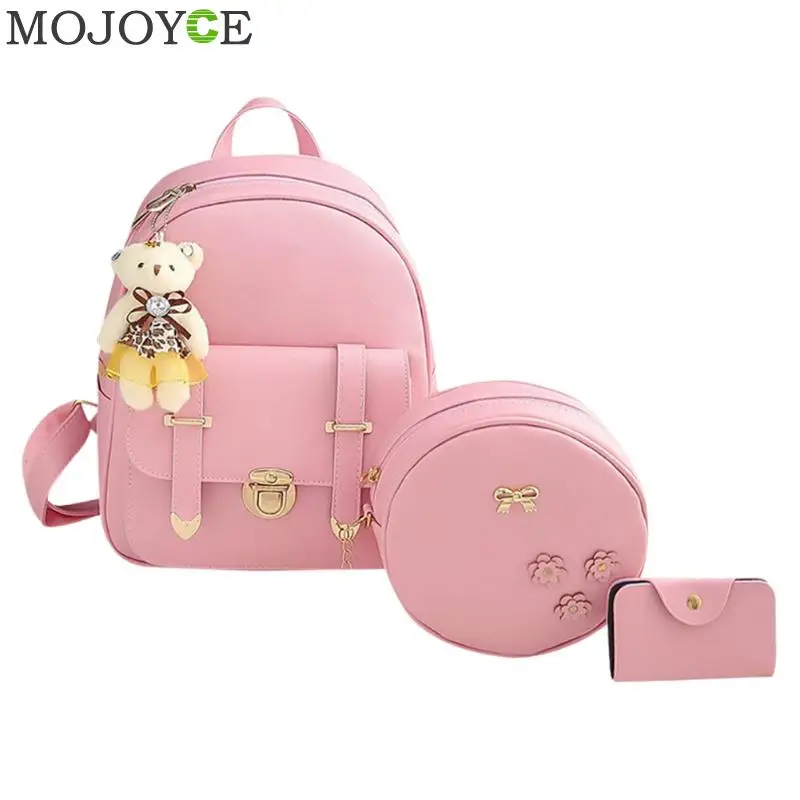 3ピース/セット女性puレザーダブル矢印はバックパックラウンドショルダーバッグ財布