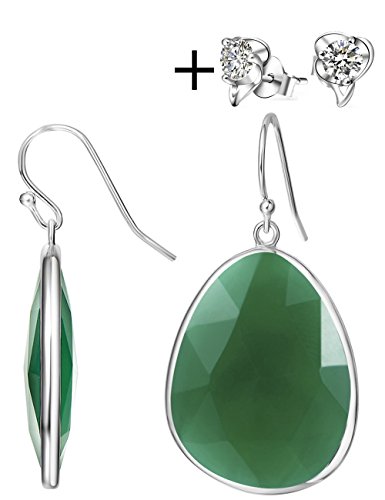 -. Feature : Geniune Green Onyx big size dangle fine Sterling Silver Earrings / IrregularTeardrop-Shape Fancy Cut Geniune Gemstones / Packed in white Jewelry box / Beautiful Eearrings A perfect gift Jewelry for Mothers Day, Birthday, Wedding Graduation, Anniversary etc. / Gemstones may have been treated to improve their appearance or durability and may require special care. Clean gemstone jewelry with a soft Polishing Cloth .