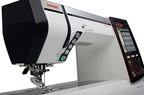 -. Feature : New JPX design format: Now you can use the new JPX file format for embroidery designs. It allows the Memory Craft 12000 to view graphic data, which you can then use to fine-tune your designs when embroidering iron on transfers. You can create JPX files in digitizer MBX and send them to the machine via Horizon Link. / 9mm Zig Zag: That's right - you can create 9mm wide stitches on the Horizon Memory Craft 12000! The extra width makes all of your decorative stitches bolder, brighter, and more distinct. Wider, more distinct stitches allow you to fill more area with stitching, quicker - saving you valuable time while sewing. Most of the 425 built-in stitches take full advantage of the 9mm width. You get twenty feet, newly designed for a 9mm stitch width, included with your machine. / Free Motion Quilter is Freer Than Ever: Precision Stitching, more decorative choices, and automatic features make expressing yourself through FMQ easier than ever. And now, you can also customize the foot height for your project and preference, then save the settings to memory. Or let Auto Pressure Height adjust for you. / See it all more clearly: In addition to lighting your work area with 10 built-in LEDs in five locations, you can also extend the retractable High Light for greater illumination in the area you need most: directly under the needle. And for an even closer view you can attach the new Acuview Magnifier. / 11" to the right of the needle: Largest bed space ever. Perfect for quilting, home decor, or any project where added space is a must. But it also means the machine can accommodate a larger hoop, with all of the stability and precision that Janome is known for! Not only does the MC 12000 have more workspace than any other Janome, the sewing bed features a 15" stainless steel plate embossed with useful measurements. 11" to the right of the needle gives you plenty of room for your biggest projects.
