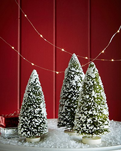 BETHANY LOWE 3 PIECE BOTTLE BRUSH CHRISTMAS TREE SET, 7"-9" SIZE, GREEN SNOW FLOCKED