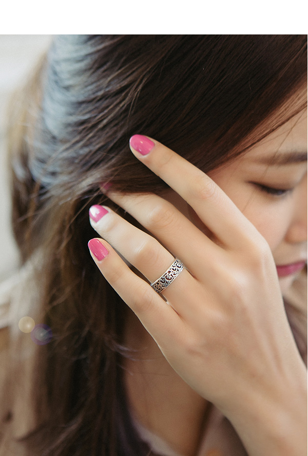 에스닉한 패턴이 분위기있는 무드를 연출하는 92.5% All silver ring.
