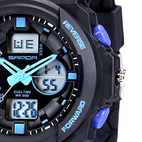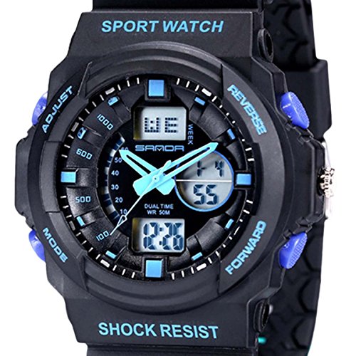 Features: Imported silicone elastic band, soft durable comfortable This sports watch with LED backlight, easily to read the time at dark. Fashion and cool appearance, the watch is a great gift for you or your family, friends. Everyone will love this it.