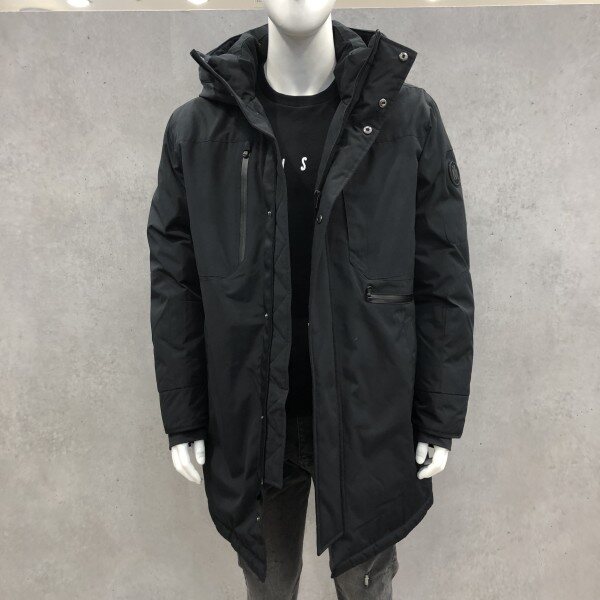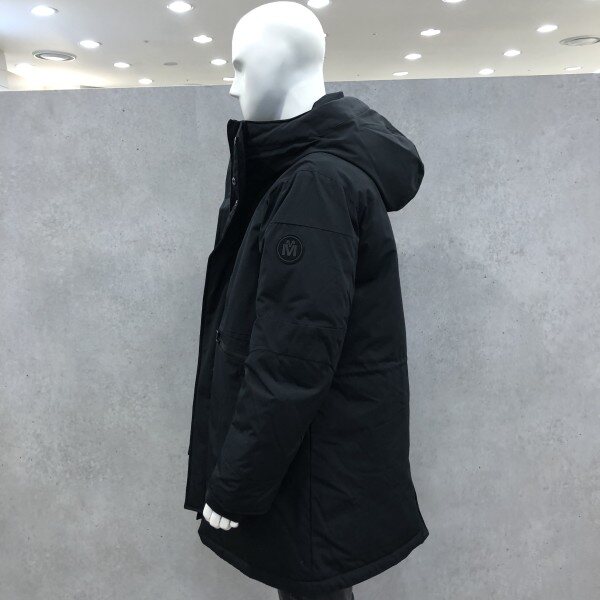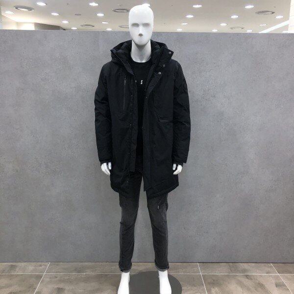 남성용 골드다운 해비 점퍼입니다 무광 블랙으로 고급스럽고 캐쥬얼하게 출시되었습니다 하프기장이며 정치수 입니다 마네킨 디피 사이즈 100입니다