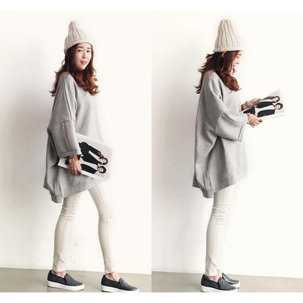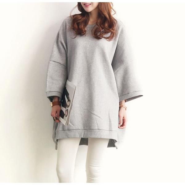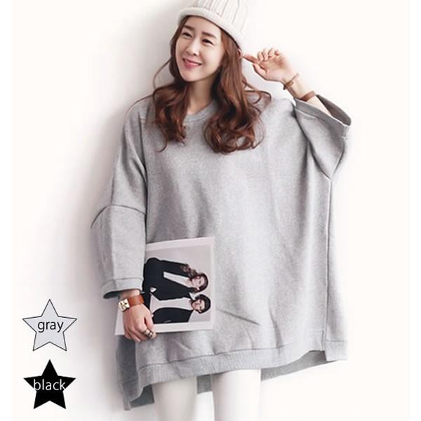 | ゆったりサイズ スエット カットソー チュニック丈 黒 ブラック グレー 無地 トップス 【スエット チュニック ワンピース ミニ丈 レディース 女性 黒 black 体型カバー ゆったり デザイン レギンスパンツと 秋】 | |