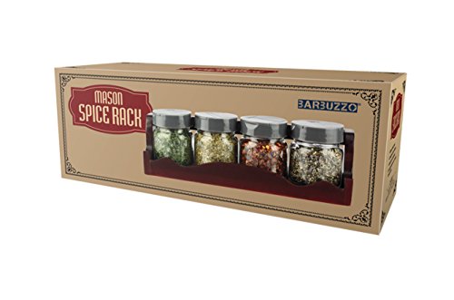 -. Binding : Kitchen -. Brand : Barbuzzo -. Color : Brown -. EAN : 0870588008855 -. Feature : Looks great in any kitchen! / Attractive and functional / Stylish wood spice rack and spices / Set of 4 - 2.4 Ounce Clear Glass Mason Jar Spice Shaker with Screw on Lid in Wooden Spice Rack / The Cap Has Two Openings One Side of the Cap Has Small Holes, the Other Features a Big Opening / Mason Spice Rack (s/4) -. Label : Barbuzzo -. Manufacturer : Barbuzzo -. Model : UTU3GI0042 -. MPN : UTS-3-GI-0220 -. NumberOfItems : 1 -. PackageQuantity : 1 -. PartNumber : UTS-3-GI-0220 -. ProductGroup : Kitchen -. ProductTypeName : KITCHEN -. Publisher : Barbuzzo -. Studio : Barbuzzo -. Title : Barbuzzo Mason Spice Rack (Set of 4), Brown -. UPC : 870588008855