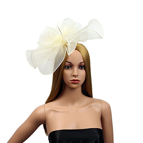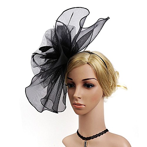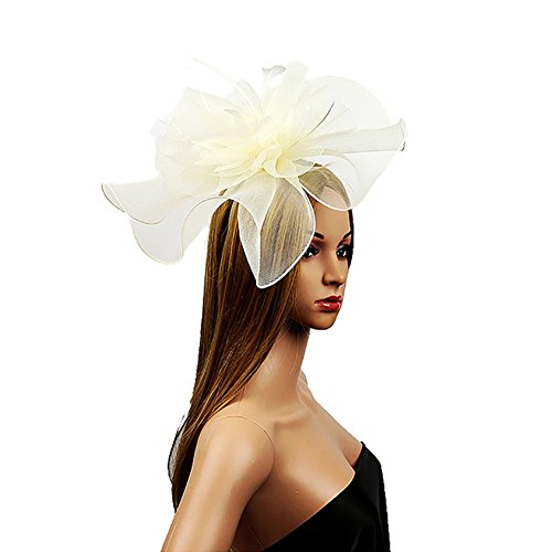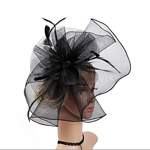 Mwfus Women Girls Mesh Feather Fascinator Wedding Cocktail Tea Party Headband Hairband