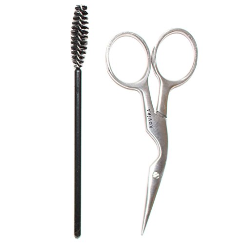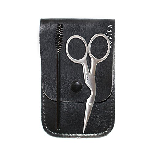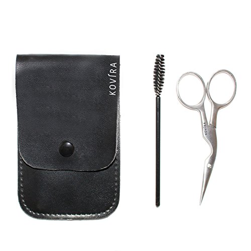 Eyebrow Scissors 3.5 inch Curved Stainless Steel,Eyelash spoolie,Eyebrow Brush and Comb with Black Case by Kovira-2pc Eyebrow Kit for Men and...
