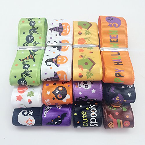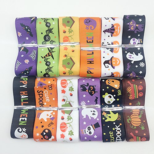 PEPPERLONELY 12 Color Set (1 Yard Each) Halloween Pattern Grosgrain Ribbon, 25mm (1 Inch)