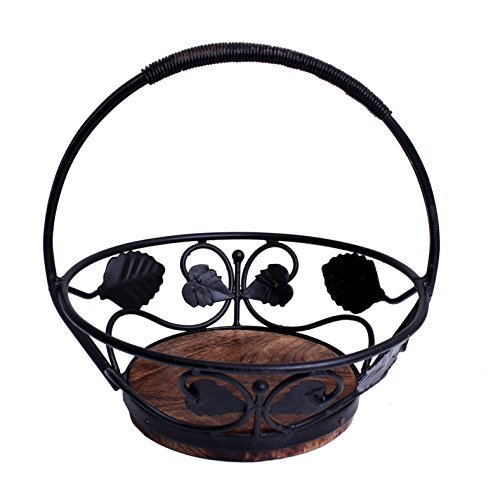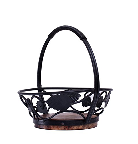 • The basket is stylishly designed in wrought iron with a wooden base and a metal handle. The base has a natural finish keeping the natural beauty of the mango wood untouched. The leaves inspired by the autumn season make the basket very attractive