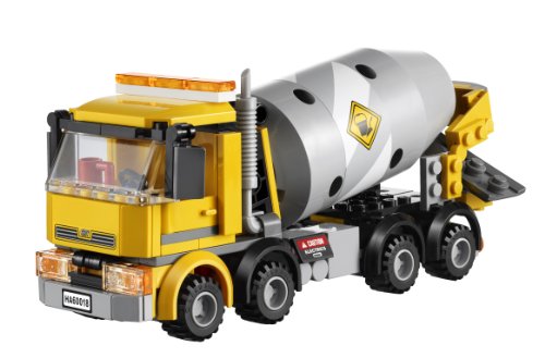 -. Feature : Includes 2 minifigures: driver and a construction worker with assorted accessories / Features rotating drum; movable chute and tipping cab section / Measures over 3" (8cm) high, 7" (20cm) long and 2" (7cm) wide / Rotate the drum / Accessories include shovel, coffee cup, wheelbarrow and 18 cement-colored bricks