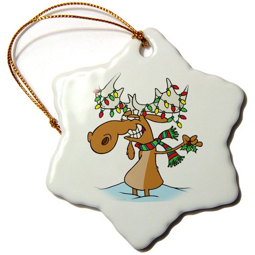 3dRose orn_104122_1 Funny Silly Christmas Moose Cartoon-Snowflake Ornament, 3-Inch, Porcelain