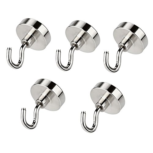 Magnetic Hooks 5 Hook Set Great for Hang and Add Storage Powerful Heavy Duty Neodymium Magnet Vertical Load Capacity 22 kg Diameter 2.5 cm height 4.5 cm