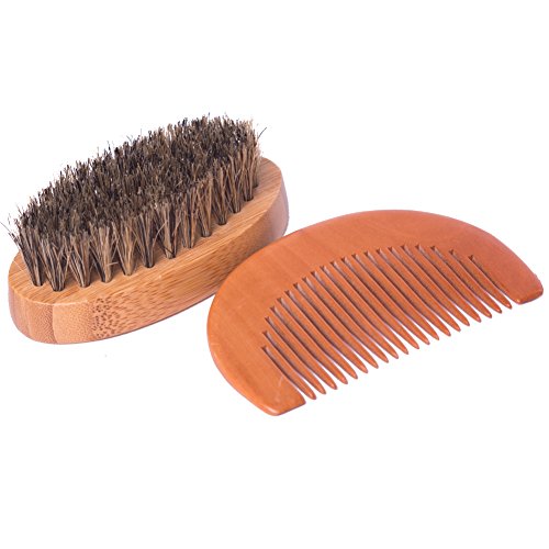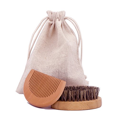 Boseen Pocket Beard Brush And Beard Comb Set for Men - Made of Round Bamboo Wood with Boar Bristles, Best Father's Day Gift