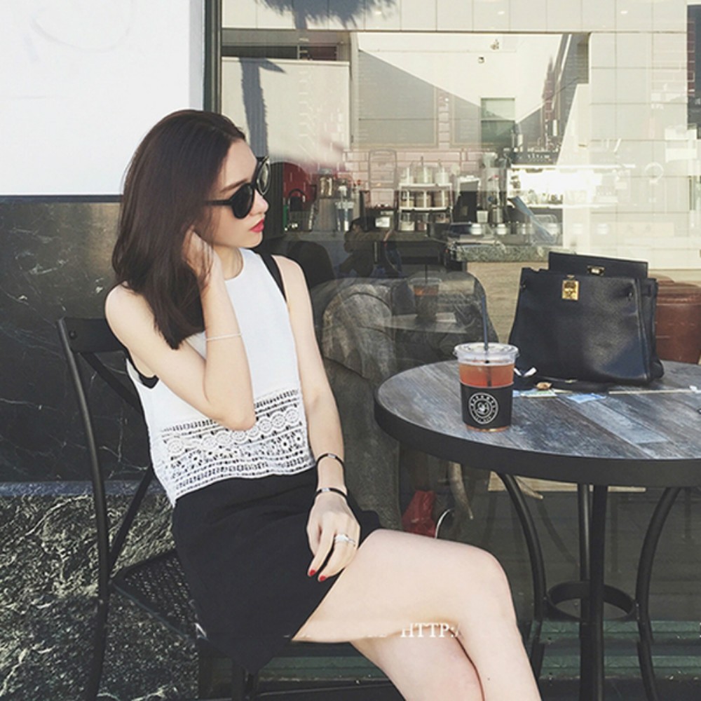 ボヘミアン☆ノースリーブ 裾レーストップス&キャミワンピ セットアップ