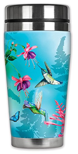 Mugzie 726-MAX "Hummingbirds" Stainless Steel Travel Mug with Insulated Wetsuit Cover, 20 oz, Black