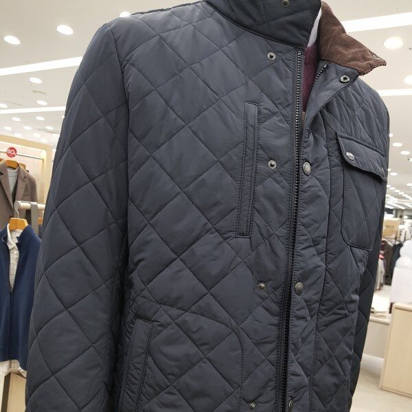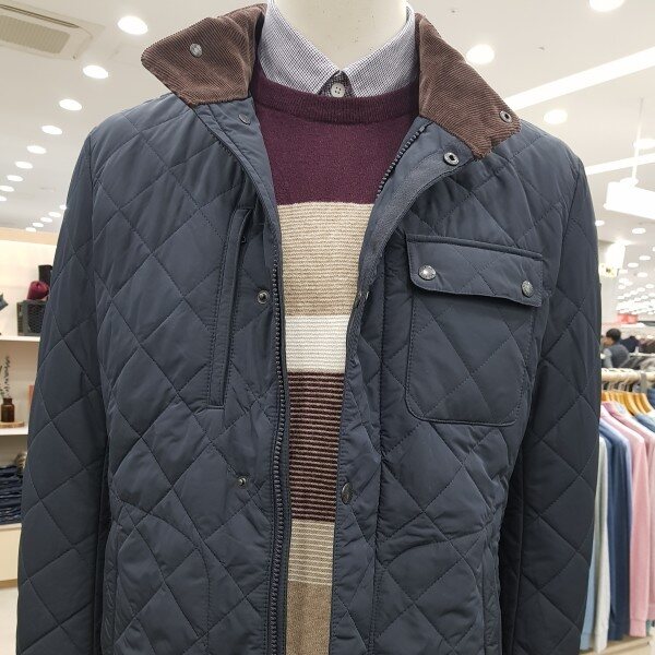 클래식 무드의 패딩?팅점퍼가죽와펜.배색코듀로이.체크안감으로 클래식무드더해줌