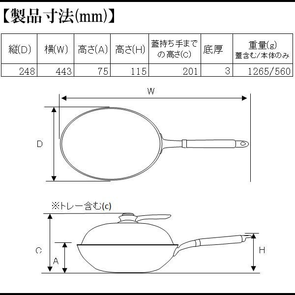 | 素材・材質 | 【本体】アルミニウム合金(AC7A)、内面:テフロン(TM)プラチナプラス加工、外面:ふっ素樹脂塗装 【蓋、スチームトレー】アルミニウム合金 【蓋ハンドル】フェノール樹脂 【ハンドル】天然木 |