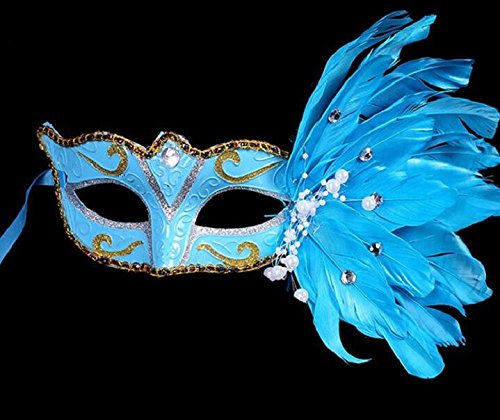 Pearl Lace Feather Mask Venetian Costume Mask Halloween Mask (Blue)