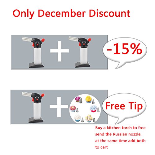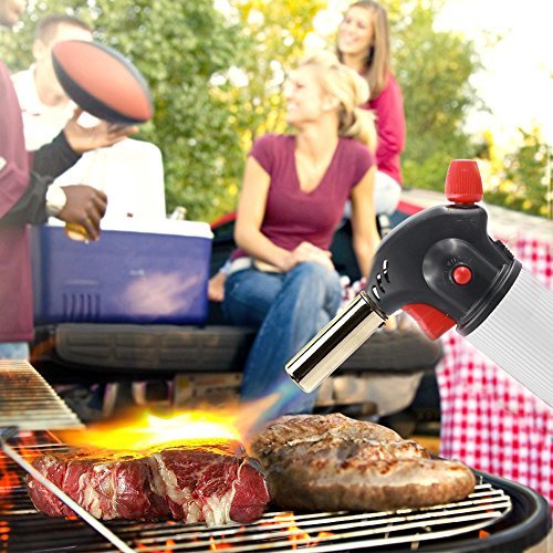 - LARGE CAPACITY----the torch is used in the restaurants /outdoor camping, Most durable, best quality butane torch. Reinforced non-slip grid aluminum handle and metal nozzle. High capacity butane refill tank.The burning time per tank last up to 60 minutes with a constant burning temperature of 2450 Fahrenheit ,Ideal for caramelizing sugar atop creme brulee, glazing a baked ham, searing a steak, roasting bell peppers, melting cheese and toasting bread crumbs. (Butane not included)