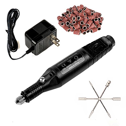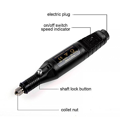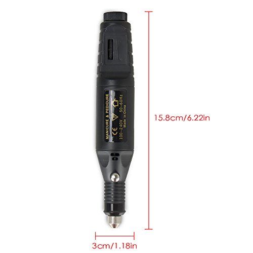 Professional Electric Manicure Machine Nail Drill art Pedicure File Polish Pen Shape Acrylics Tool Finger Toe Care Product with Multi Sanding Bits and Power Adapter (Black)