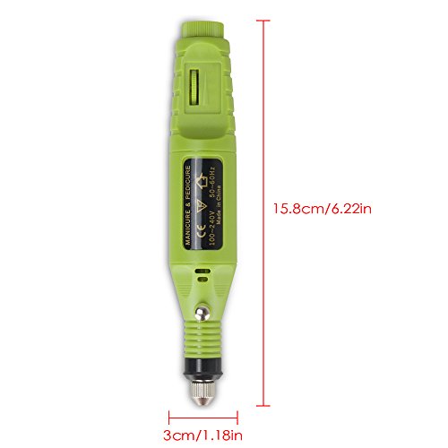 Professional Electric Manicure Machine Nail Drill art Pedicure File Polish Pen Shape Acrylics Tool Finger Toe Care Product with Multi Sanding Bits and Power Adapter (Green)