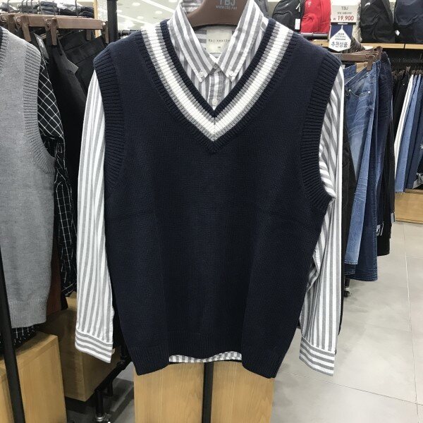 남성 V넥 니트 베스트 슬랙스 데님과코디하기 좋은 아이템