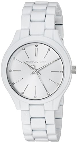 Michael Kors Watches Womens Mini Slim Runway White Coated Stainless Steel Watch