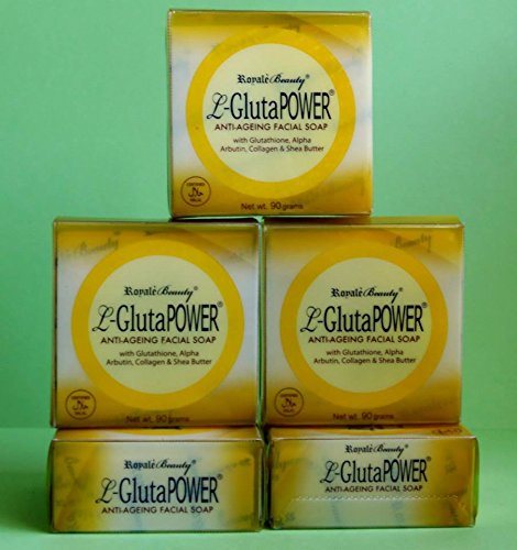 - Feature : L-GlutaPower Soap with Glutathione & Vitamin E / Anti-ageing Facial Soap. with L-Glutathione, Alpha Arbutin, Collagen & Shea Butter. / Helps remove pimples Mildly exfoliates Nourishes & rejuvenates the skin Lightens overall skin tone by inhibiting melanin formation