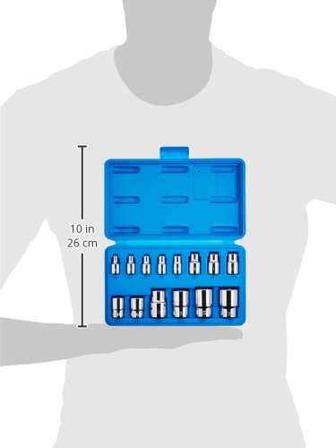- SIZES INCLUDED: 1/4-inch drive: E4, E5, E6, E7, E8; 3/8-inch drive: E10, E11, E12, E14, E16; 1/2-inch drive: E18, E20, E22, E24