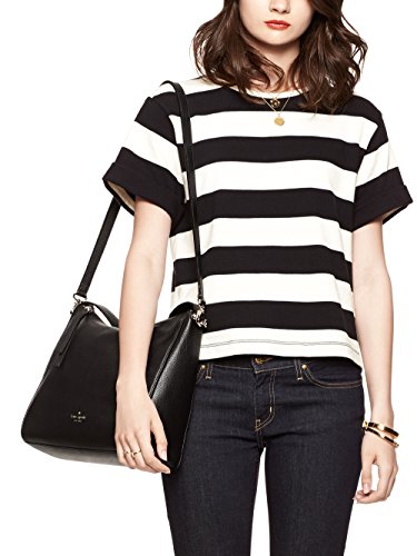 Product Description Wrapped in classic black pebbled leather with 14-karat light gold plated hardware. This versatile Charles Street Small Haven is lined in solid black Capital Kate logo print fabric and features an inner zippered pocket and two open slip pockets. It has a fully zippered top closure, and Kate Spade's iconic logo accents the lower front. There is a single leather top handle with a drop of about 5 inches, or you can use the removable, longer leather shoulder strap. This gem measures approximately 11.5 inches (L) x 10 inches (H) x 4.5 inches (W). 0