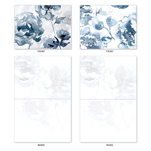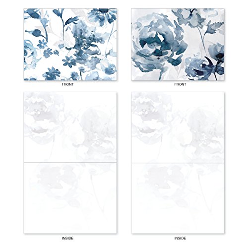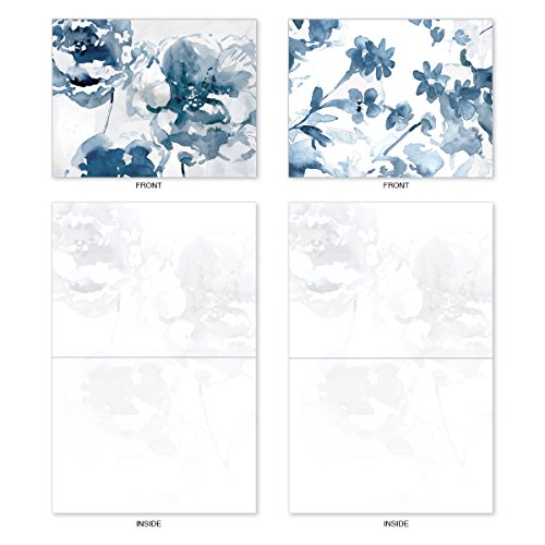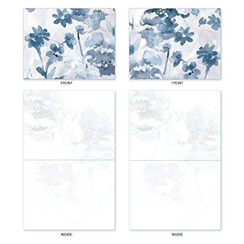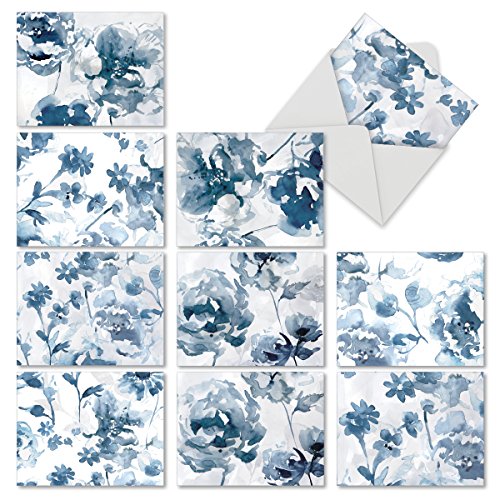 M6597OCB Indigo Blooms: 10 Assorted Blank All-Occasion Note Cards Featuring a Larger Watercolor Painting of Indigo Flowers That is Cropped into Smaller Images, w/White Envelopes.