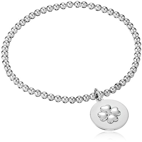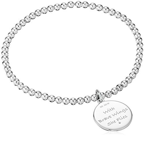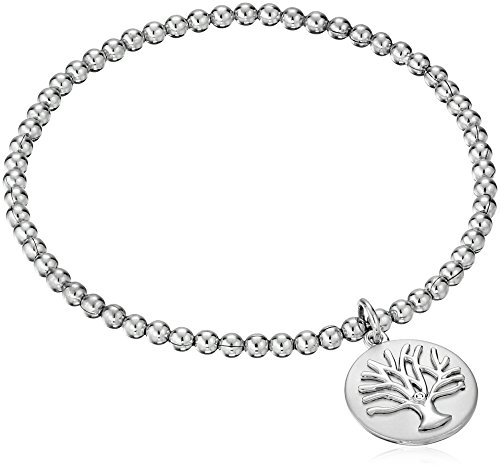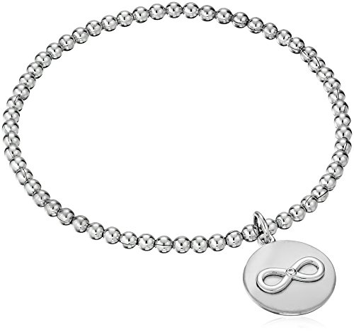 Flexible stretch silver bead bracelet, designed with no clasp for easy on and off. Expands to fit over most hands and springs back to 7 inches on your wrist.