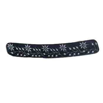 Handcrafted Soapstone Incense Holder with Mother of Pearl Inlay - Black Flower Carved