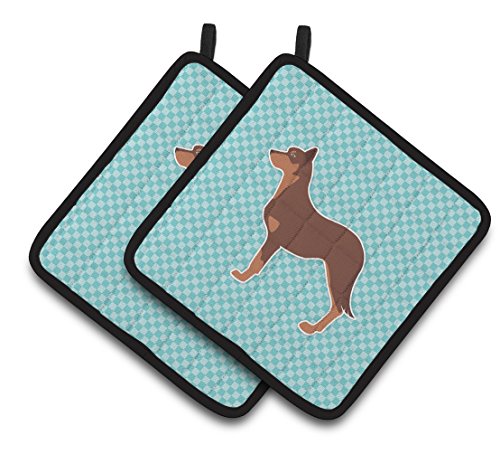 Caroline's Treasures Australian Kelpie Dog Checkerboard Blue Pair of Pot Holders BB3729PTHD, 7.5HX7.5W, Multicolor