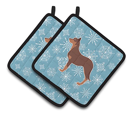 Caroline's Treasures Winter Snowflake Australian Kelpie Dog Pair of Pot Holders BB3529PTHD, 7.5HX7.5W, Multicolor