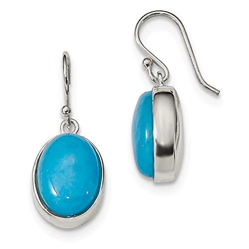 Solid 925 Sterling Silver Blue Mountain Simulated Jade Shepherd Hook Earrings (11.9mm x 29mm)