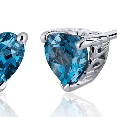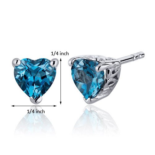 Center Stone: 2 Pieces Genuine London Blue Topaz, Heart Shape 6 mm, 2.00 carats total weight, Caribbean Blue Hue with Brilliant Sparkle. Earrings: 2.10 grams, Pure Sterling Silver with .925 stamp, Earrings feature Stud posts with Bullet backs, exceptional Design, Craftsmanship anding. Perfect gift for Mothers Day, Birthdays, Valentines Day, Graduation, Christmas or just about any other occasion. Money Back Guarantee. Includes a Signature Gift Box & style SE7986Feature