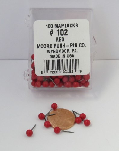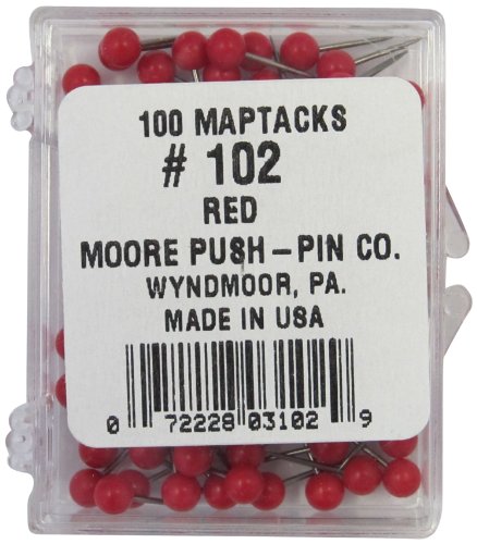 Moore Push-Pin Map Tacks, Red, 100 Tacks per Pack