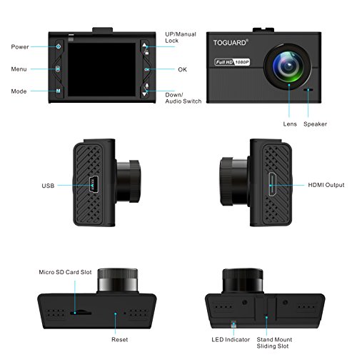 ?Wide Angle and Auto Record? 170 degree wide angle lens with 1.5 inch LCD display, presents the widest field of view possible for you in your car. Simply plug Toguard Dash Cam into any TV via HDMI cable and view video footage or pictures on a big screen. Automatically power on and shut off when car turn on/off.