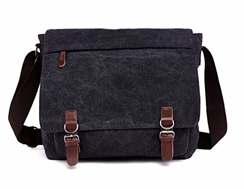Kenox Vintage Classic Canvas Laptop Messenger Bag Crossbody School Bag Business Briefcase Black 16 Inches