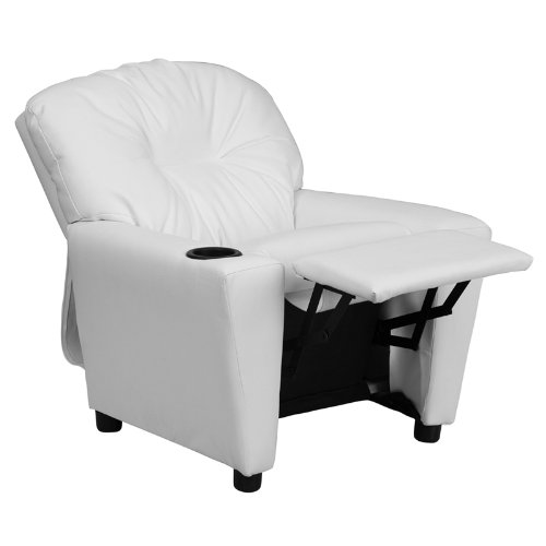 Kids will now be able to enjoy the comfort that adults experience with a comfortable recliner that was made just for them This chair features a strong wood frame with soft foam and then enveloped in durable vinyl upholstery for your active child. Choose from an array of colors that will best suit your child's personality or bedroom. This petite sized recliner will not disappoint with the added cup holder feature in the armrest that is sure to make your child feel like a big kid [BT-7950-KID-WHITE-GG].Feature