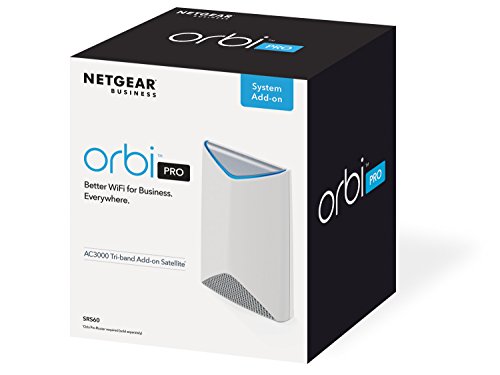 The Orbi Pro AC3000 Tri-band Add-on Satellite* by NETGEAR expands your Orbi Pro Wi-Fi System coverage by up to 2,500 square feet with high-performance FastLane3 patented Tri-band AC3000 Wi-Fi technology. Features include MU-MIMO, wire-free installation, 3GB AC Wi-Fi and flexible placement. Better Wi-Fi for Business. Everywhere.
