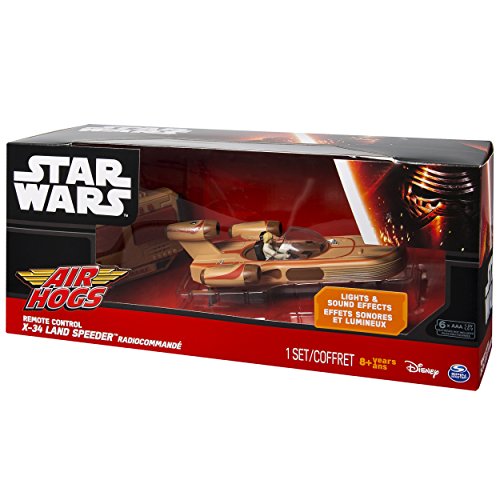 -. Binding : Toy -. Brand : Air Hogs -. Color : Tan / Orange -. EAN : 0778988124932 -. Feature : Speed away from the Sand People of Tatooine with Luke Skywalker's original X-34 Landspeeder! / The Landspeeder is a fully functional RC vehicle featuring lights and authentic Star Wars sound effects that put you right back in the movie. / Recreate your favorite Star Wars moment as you race your own Landspeeder! The remote control plays authentic movie sound effects with every move! / The Star Wars X-34 Landspeeder is for Star Wars fans ages 8+. 6 AA batteries required for operation. For indoors use only. / Includes: 1 Air Hogs Star Wars X-34 Landspeeder, 1 Remote Control, 1 Instruction Guide -. IsAdultProduct : 0 -. ItemPartNumber : 20070044-6026780 -. Label : Spin Master -. Manufacturer : Spin Master -. Model : 20070044-6026780 -. MPN : 20070044-6026780 -. NumberOfItems : 1 -. PackageQuantity : 1 -. PartNumber : 20070044-6026780 -. ProductGroup : Toy -. ProductTypeName : TOYS_AND_GAMES -. Publisher : Spin Master -. Size : 8" x 2.5" x 3.5" -. Studio : Spin Master -. Title : Air Hogs Star Wars Remote Control X-34 Landspeeder -. UPC : 778988124932 -. Warranty : No Warranty