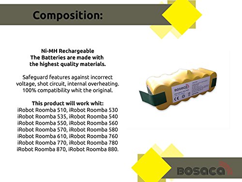 Bosaca iRobot Akku/Battery Roomba Supermacht 4500 mAh Serie (500/600/700/800/900) 500 510 521 530 531 532 534 535 536 540 550 551 555 560 562 563 564 PET 565 570 572 577 580 581 590 600 6