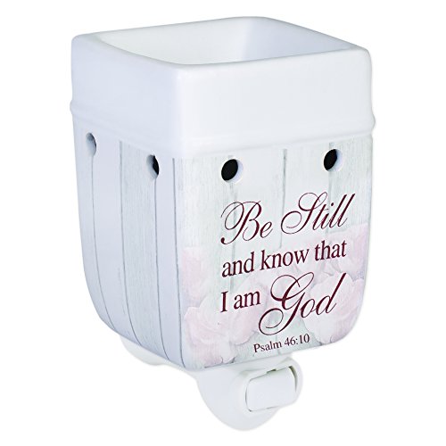 Be Still Psalm 46:10 Distressed Wood Design White Ceramic Stoneware Electric Plug-In Wax Tart Oil Warmer