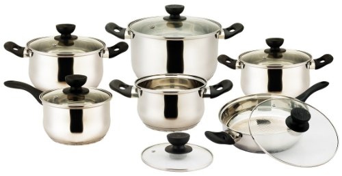 -. Feature : Durable stainless steel cookware set / Suitable for use on all stovetops / 3 ply base, full encapsulated disk for even heat distribution / Metal, Nylon or wood utensils may be use with any stainless surface / European design for easy stirring and serving