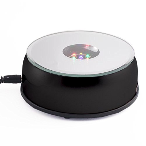 Amlong Crystal 3-Inch Rotating LED Light Display Base with Adaptor, Black
