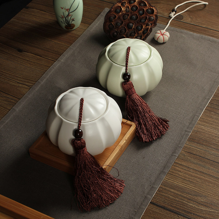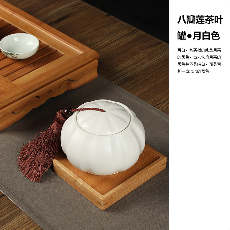 定窑茶叶罐 茶叶包装盒 中号陶瓷储物罐密封罐 茶道配件