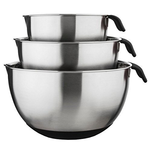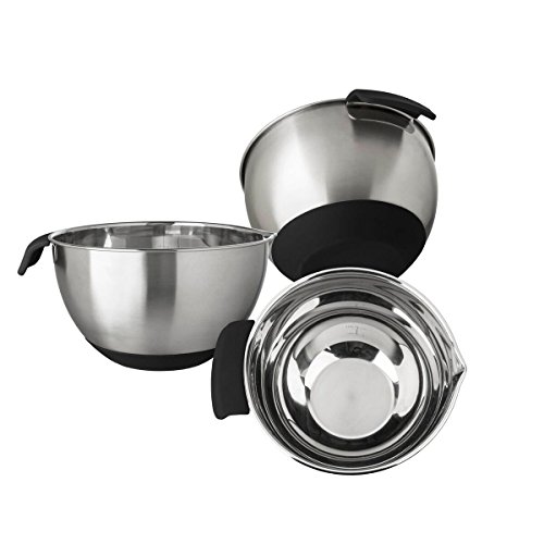 Pearington 3 Piece Mixing Bowl with Nonslip Bottom and Handle, Black